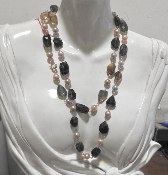 collana con tormalina e perle d'acqua dolce, montata in argento
